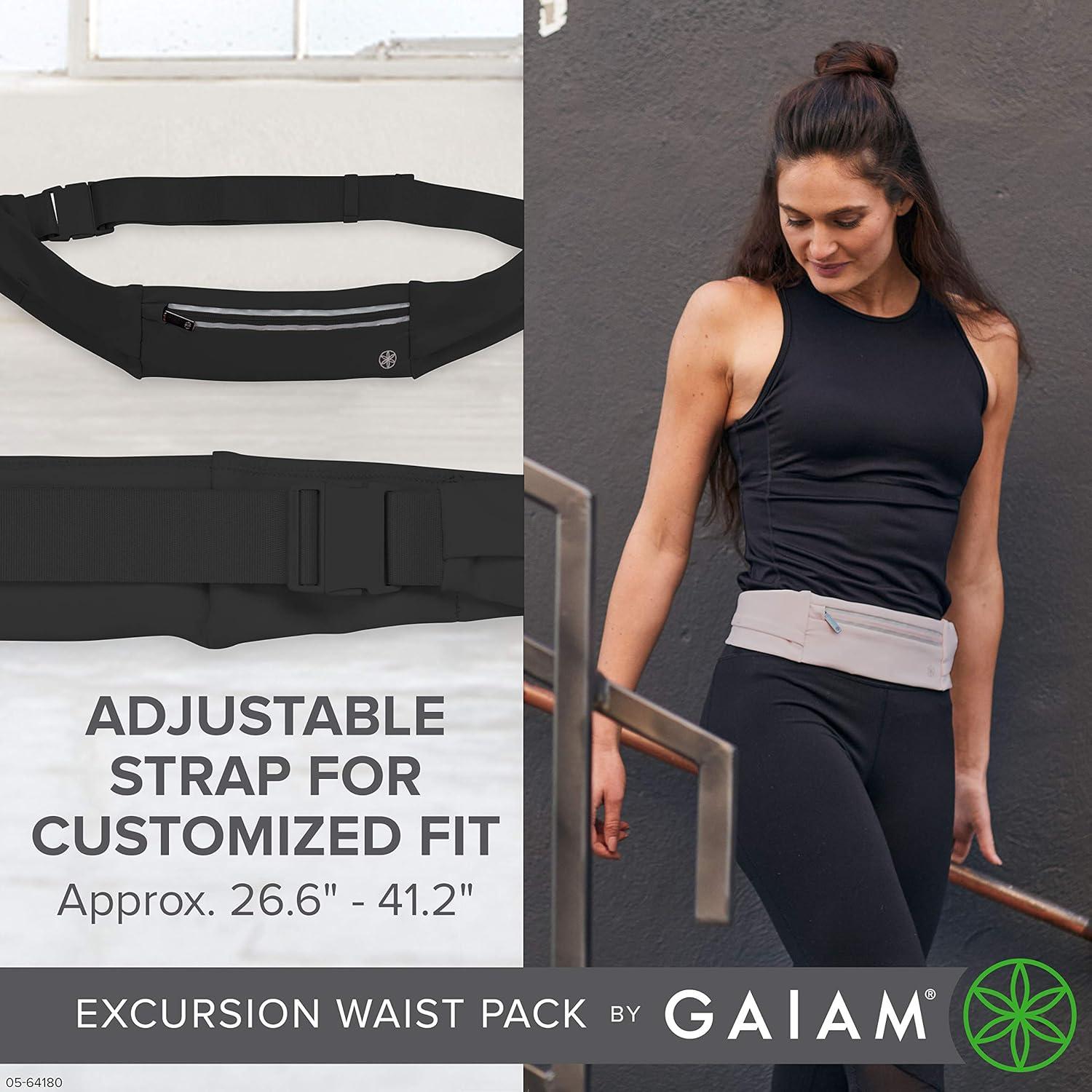 RUNNING BELT: Gaiam Excursion Waist Belt is an ultra-soft, slim style waist belt bag designed for lightweight use while running, walking, exercising, or on-the-go
