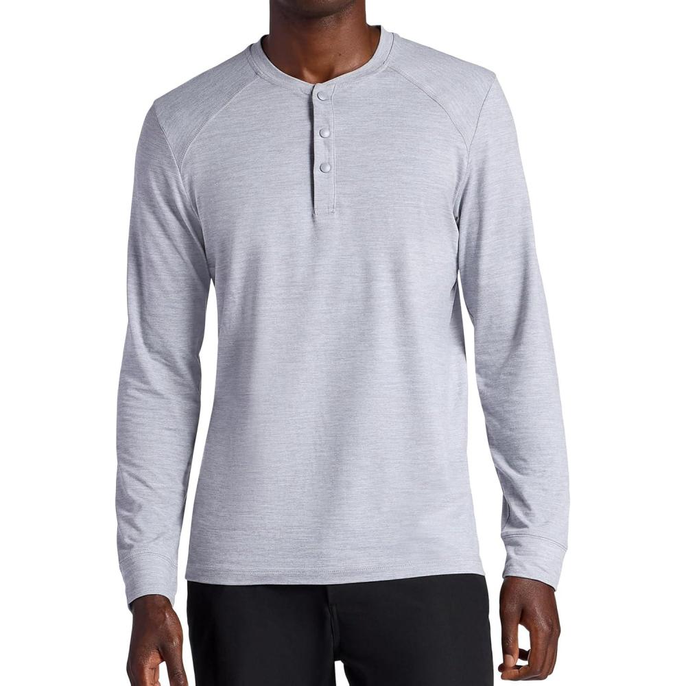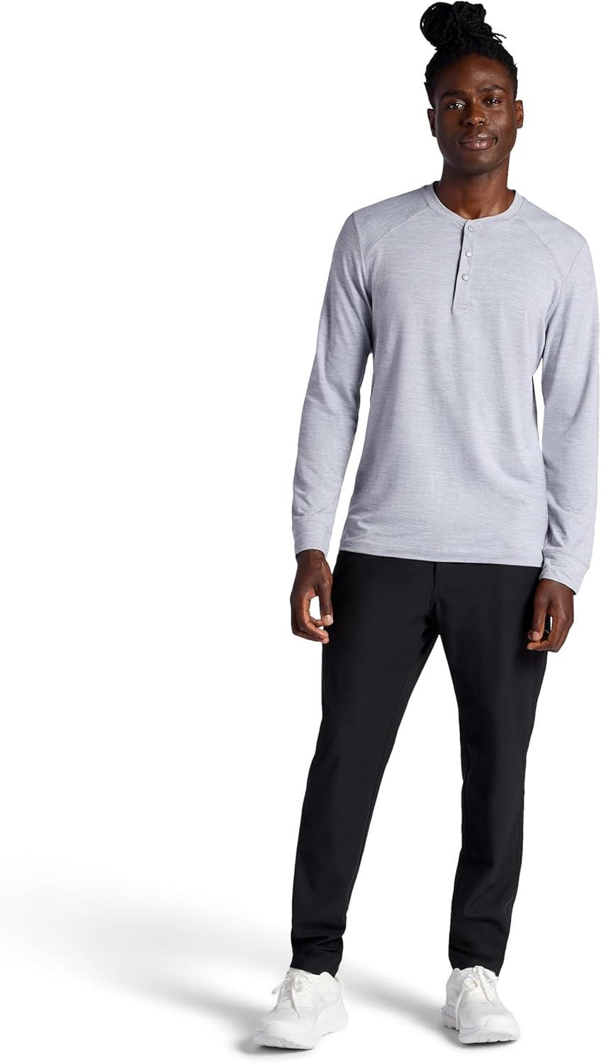 Gaiam Men’s Long Sleeve Henley Shirt, Standard Fit, Stretch Midweight Material(Sleet Heather – Commuter)